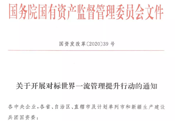 6月13日,國(guó)資委正式印發(fā)《關(guān)于開(kāi)展對(duì)標(biāo)世界一流管理提升行動(dòng)的通知》(以下簡(jiǎn)稱(chēng)《通知》),對(duì)國(guó)有重點(diǎn)企業(yè)開(kāi)展對(duì)標(biāo)提升行動(dòng)作出部署安排。