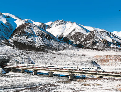 2月26日,位于甘肅、青海兩省交界處的祁連山白雪皚皚,一列動車駛出被譽(yù)為世界海拔第一高鐵隧道的祁連山隧道。 成 林?jǐn)z(人民視覺)