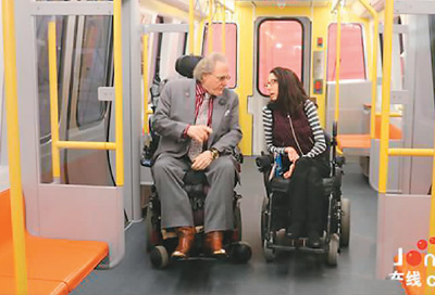 “現(xiàn)在,平生第一次,我不再需要?jiǎng)e人幫我進(jìn)到車廂里了。這種獨(dú)立性對(duì)我來(lái)講至關(guān)重要?!瘪R薩諸塞州波士頓地鐵老乘客懷特先生坐著輪椅在車廂里溜達(dá)了一圈,對(duì)地鐵新車充滿期待。當(dāng)?shù)貢r(shí)間4月3日,在美國(guó)波士頓舉行的橙線地鐵模型車首次展出活動(dòng)上,美國(guó)民眾感受了來(lái)自中國(guó)的地鐵車廂。更寬敞、美觀,設(shè)計(jì)更加人性化,讓美國(guó)民眾為之點(diǎn)贊?!败噹麅?nèi)外側(cè)都有專門的按鈕,可以讓坐在輪椅里的人在上、下車的時(shí)候直接啟動(dòng)車廂底部的專用輪椅車平板,通行完全無(wú)障礙?!睉烟叵壬f(shuō)。