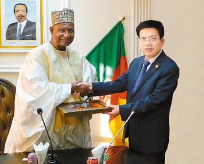 陜西建工集團(tuán)黨委書記、董事長、總經(jīng)理張義光(右)拜會(huì)喀麥隆旅游部長貝洛?布巴?邁加里先生(藺進(jìn)士 攝)