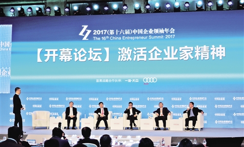 圖為“2017(第十六屆)中國(guó)企業(yè)領(lǐng)袖年會(huì)”開幕主題論壇現(xiàn)場(chǎng)。 記者 崔國(guó)強(qiáng)攝