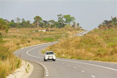 驅(qū)車(chē)駛出布拉柴維爾,剛果盆地遼闊的草原便映入眼簾。汽車(chē)很快駛上寬闊平坦的雙向四車(chē)道公路,這便是剛果(布)國(guó)家一號(hào)公路。