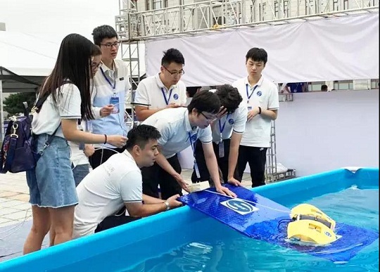 ????比賽當(dāng)日,同學(xué)們更是頂住競(jìng)爭(zhēng)壓力,在天氣非常惡劣的情況下,沉著應(yīng)對(duì),讓兩件航行器在水下出色地完成了指定動(dòng)作,獲得了評(píng)委專(zhuān)家們的高度贊揚(yáng)。