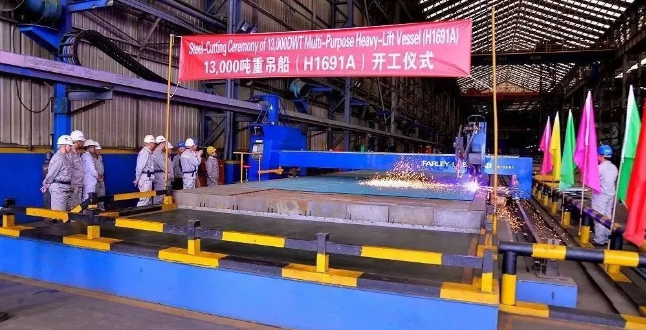 ????11月12日,滬東中華造船(集團(tuán))有限公司為中國(guó)船舶(香港)航運(yùn)租賃有限公司建造的系列13000噸重吊船中的6號(hào)船開工。該船由上海船舶研究設(shè)計(jì)院設(shè)計(jì),總長(zhǎng)149.99米,型寬25.6米,型深13.5米,設(shè)計(jì)吃水6.8米,結(jié)構(gòu)吃水8.3米,入級(jí)DNV GL。