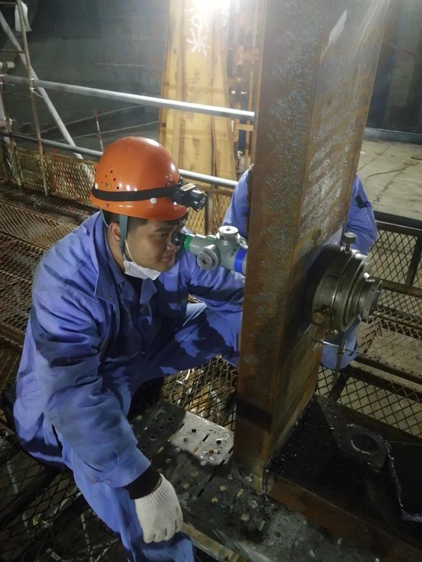 為確保VLCC照光工作順利完成,大船集團輪機工藝小組,提前一周就進入“作戰(zhàn)”狀態(tài),他們每天堅持深入現(xiàn)場,從細小處入手,檢查每一個可能影響軸舵系施工質(zhì)量的隱患,加班加點成了工作的常態(tài)。