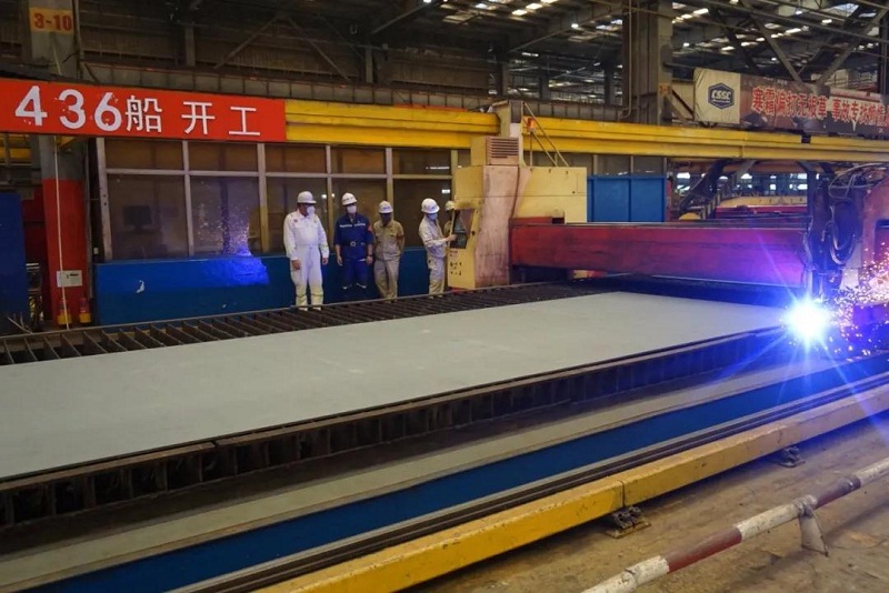 ????5月19日,中國(guó)船舶集團(tuán)旗下外高橋造船為PTM公司建造的11.4萬(wàn)噸阿芙拉油輪2號(hào)船H1436船順利開(kāi)工。本項(xiàng)目也是繼5月12日首制船H1435船順利開(kāi)工時(shí)隔一周后雙方再度攜手合作實(shí)現(xiàn)的又一重要節(jié)點(diǎn)。受疫情影響,船東駐廠組代表無(wú)法到場(chǎng),委托美國(guó)船級(jí)社(ABS)代表驗(yàn)收開(kāi)工鋼板情況見(jiàn)證鋼板切割并以“云簽字”的形式,簽署開(kāi)工節(jié)點(diǎn)證書(shū)。
