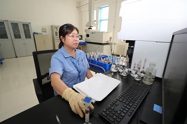 △七二五所高級(jí)工程師杜米芳正在進(jìn)行艦船鈦合金微量元素快速分析方法試驗(yàn)