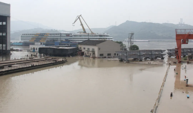 8月19~20日,長江洪峰先后到達東港船舶和川船重工。東港船舶船臺碼頭、104廠房、鋼結(jié)構(gòu)新堆場、103總拼廠房被淹。川船重工2-4、2-5、2-6室內(nèi)船臺,涂裝廠房、主機庫、變壓站、下水斜架絞車房等主要生產(chǎn)場地被淹,廠房內(nèi)進水已達1米深。