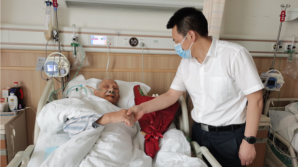 七二六所黨委副書(shū)記帶隊(duì)前往醫(yī)院看望慰問(wèn)了在醫(yī)院住院治療的離休干部紀(jì)炎輝,向他致以崇高的敬意和親切的問(wèn)候,并送上慰問(wèn)金。