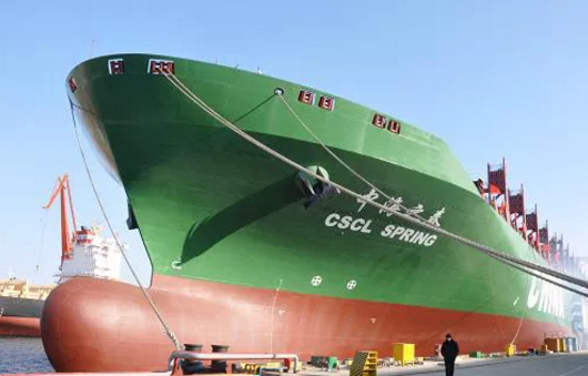 2014年1月8日,我國完全自主研發(fā)、自行設(shè)計、自行建造的第一艘10000TEU超大型集裝箱船“中海之春”號在大船集團(tuán)交付?!爸泻V骸碧柕慕桓?,不僅實現(xiàn)了國內(nèi)建造超大型集裝箱船又一次新的飛躍,而且使我國成為繼韓國、日本之后,能夠自主研發(fā)、自主設(shè)計、自主建造同型超大型集裝箱船的國家。