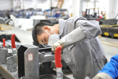 看,昆船公司小伙伴認真的眼神。他正專注于成都機場輸送設(shè)備的零部件焊接裝卡工作。