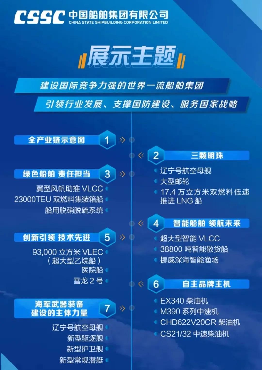 船舶海工裝備產業(yè)展區(qū) 分為船舶與海洋工程、船舶配套2個大區(qū),整體展示了中國船舶集團強大的船舶建造能力。船舶與海洋工程分為海洋運輸與工程裝備,海洋資源開發(fā)、海洋科考裝備,海洋漁業(yè),新開發(fā)船型與船舶改裝等六大板塊;船舶配套區(qū)包括動力與配套、機電裝備和電子信息裝備3大部分,共展出模型及實物68個,重點聚焦自主品牌、系列化產品及國際領先產品,展示了中國船舶集團在業(yè)界最為完整齊全的船舶動力機電配套產業(yè)鏈,具備提供穩(wěn)定、可靠的全動力和配套解決方案的能力。