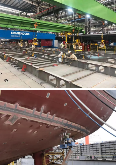 安環(huán)保衛(wèi)部安保消員工堅(jiān)守崗位,保障大型郵輪作業(yè)安全;集配部碼頭鋼板抓緊卸貨,全力保障生產(chǎn);制造二部400余名員工投入大型郵輪薄板分段建造;涂裝部800余名員工對(duì)大型郵輪/民船關(guān)鍵項(xiàng)目進(jìn)行涂裝;搭載部1300余名員工堅(jiān)守崗位保證船塢節(jié)點(diǎn);總裝一部400余人圍繞止鏈器/艙口圍導(dǎo)軌安裝等開展生產(chǎn),總裝二部對(duì)大型郵輪總段扣壓管穿艙件進(jìn)行焊接;生產(chǎn)保障部開展大型郵輪臨時(shí)電力系統(tǒng)新式電箱改造。
