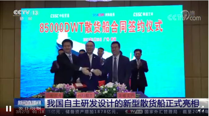 3月26日,中國船舶集團旗下黃埔文沖舉行發(fā)布會,正式推出該公司首艘全過程自主設(shè)計,并獲得訂單的散貨船85000載重噸(DWT)散貨船船型。