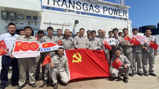 4月6~12日,在國(guó)內(nèi)首款大型LNG-FSRU首制船試航期間,滬東中華試航團(tuán)隊(duì)22名黨員、團(tuán)員多次開展黨史學(xué)習(xí)教育。
