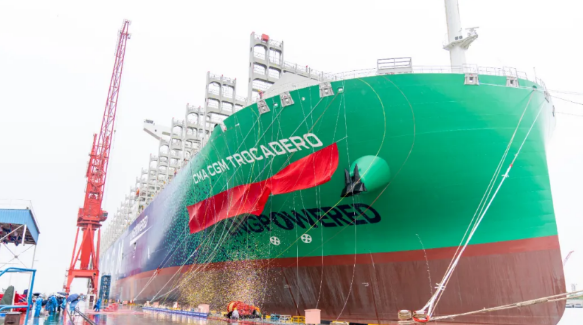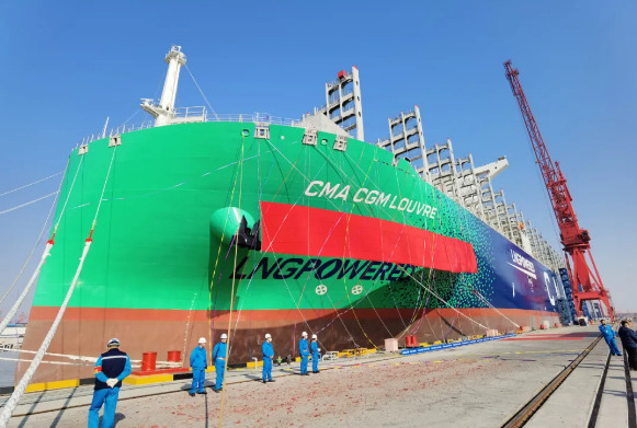 2017年9月,中國船舶集團(tuán)與法國達(dá)飛集團(tuán)簽署九艘23000TEU超大型集裝箱船建造合同,截至目前,已交付八艘。 該系列船均由中國船舶集團(tuán)七〇八所自主研發(fā)設(shè)計,是首次引入液化天然氣雙燃料系統(tǒng)的超大型集裝箱船。因為它又大又環(huán)保,是名副其實的海上“巨無霸”,我們都叫它“綠巨人”!