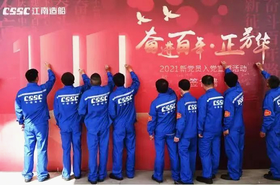 在慶祝中國共產黨成立100周年之際,100名來自中國船舶集團的產業(yè)工人新黨員在江南造船博物館集中進行了入黨宣誓。