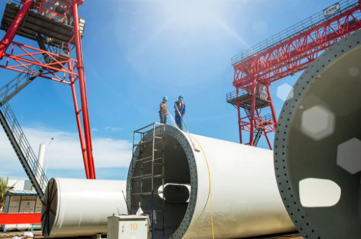 七月,在中國海裝大連莊河項(xiàng)目中,火熱的盛夏配上火熱的搶裝,運(yùn)維人員正在對24號機(jī)組做底段塔筒安裝前的準(zhǔn)備工作。