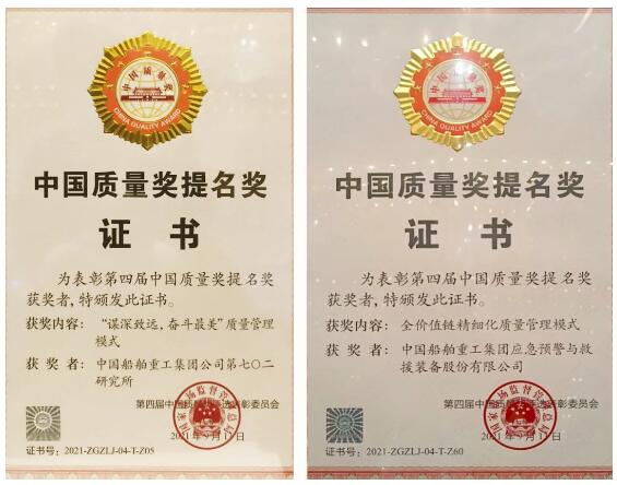 9月16日,在中國質(zhì)量(杭州)大會上,第四屆中國質(zhì)量獎評選結(jié)果揭曉,中國船舶集團(tuán)旗下七〇二所、中船應(yīng)急分別以“謀深致遠(yuǎn),奮斗最美”質(zhì)量管理模式、全價值鏈精細(xì)化質(zhì)量管理模式,榮獲第四屆中國質(zhì)量獎提名獎。