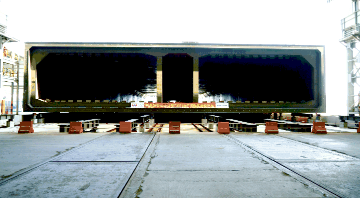 E15管節(jié)鋼殼于8月23日過駁交運。緊接著,E16管節(jié)鋼殼于8月24日完成縱移,于9月24日通過廠內(nèi)聯(lián)合驗收,從縱移到完成交付僅用時1個月,創(chuàng)造了目前為止的最短周期紀錄。