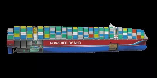 大船集團(tuán)與曼恩能源方案、英國勞氏船級社(LR)共同開發(fā)了“C-FUTURE” 零碳排放23000箱超大型集裝箱船。LR頒發(fā)了AIP證書。該船型率先提出“C-FUTURE”概念,創(chuàng)新性的采用液氨為動力燃料,實(shí)現(xiàn)船舶零碳排放;曼恩最新研發(fā)的液氨燃料主機(jī)和大船集團(tuán)自主研發(fā)的燃料供應(yīng)系統(tǒng),匹配大型可調(diào)螺距螺旋槳,配合軸帶發(fā)電機(jī),提供船舶推進(jìn)動力和電力供應(yīng);常壓、低溫、低蒸發(fā)率、高艙容利用率的A型燃料艙,為船舶提供了充沛續(xù)航。