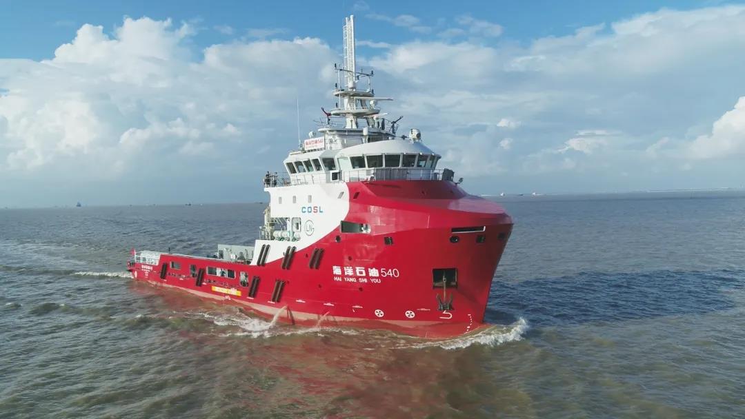 10月18日,中國船舶集團旗下武船集團建造的4000馬力LNG動力守護供應船首制船“海洋石油540”成功交付。