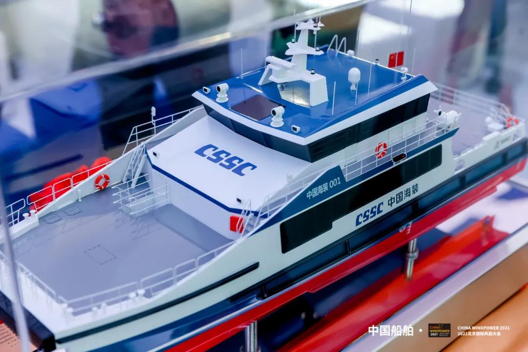 在本屆風(fēng)能大會上,中國海裝與遠(yuǎn)舟科技聯(lián)合設(shè)計(jì)制造的國內(nèi)首艘30米級專業(yè)風(fēng)電運(yùn)維船發(fā)布。投運(yùn)后,該船將與中船海工101海上風(fēng)電安裝平臺一道,為海上運(yùn)維“保駕護(hù)航”。
