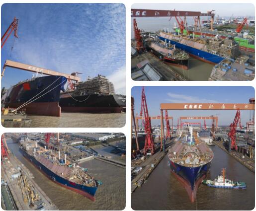 11月23日,滬東中華2號船塢內(nèi)一艘174000立方米LNG船、一艘79960立方米LNG船、半艘174000立方米LNG船實現(xiàn)3船起浮、2船出塢,這也是滬東中華歷史上首次實現(xiàn)2艘LNG整船同塢同日下水。