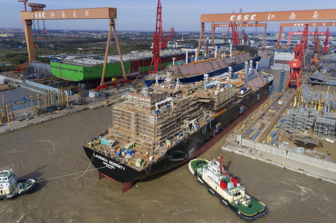 滬東中華全年累計交船17艘,其中23000TEU雙燃料超大型集裝箱船3艘、174000立方米液化天然氣(LNG)運輸船2艘、174000立方米大型浮式液化天然氣儲存及再氣化裝置(LNG-FSRU)2艘、優(yōu)化型13000噸重吊船4艘、18600立方米LNG加注船1艘、15000TEU超大型集裝箱船3艘,以及其他船舶2艘。