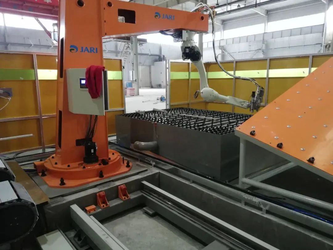該生產(chǎn)線基于機器人離線編程與自動激光切割技術(shù),輔助采用搬運機器人系統(tǒng)、自動沖床及自動涂油系統(tǒng)等自動化手段,實現(xiàn)了多種罐體封頭的定位、物流轉(zhuǎn)運、沖壓成型、裁切、碼垛等自動化生產(chǎn)作業(yè),成功代替了客戶原有的半自動成型、手動切割等操作模式,罐體封頭的生產(chǎn)效率提高了75%,生產(chǎn)質(zhì)量和產(chǎn)品精度大幅提升,在罐體封頭全自動生產(chǎn)領(lǐng)域獲得新突破。