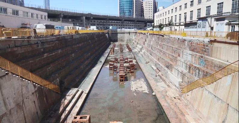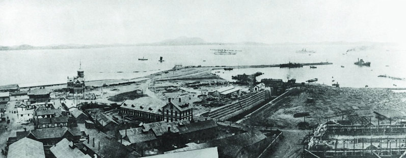 修船南塢始建于1899年,1902年底初建完工,長(zhǎng)116米、寬13米、深7.6米,采用兩開(kāi)式扉門(mén),并配備電動(dòng)排水泵。