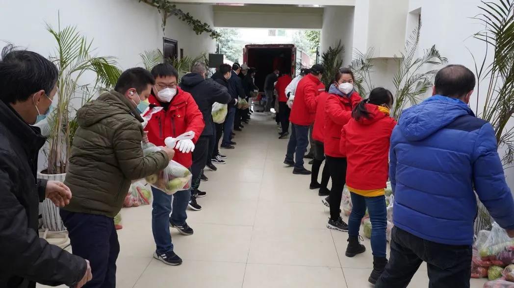 元旦前,東儀科工100余位黨員、職工火速集結組成志愿團隊,有序對16輛汽車運來的物資進行卸載、分裝,忙而不亂,將一袋袋蔬菜分樓棟、分單元送到居家隔離的住戶手中,確保3200余戶居民在新的一年到來之前收到政府的愛心物資,滿足基本生活需求。