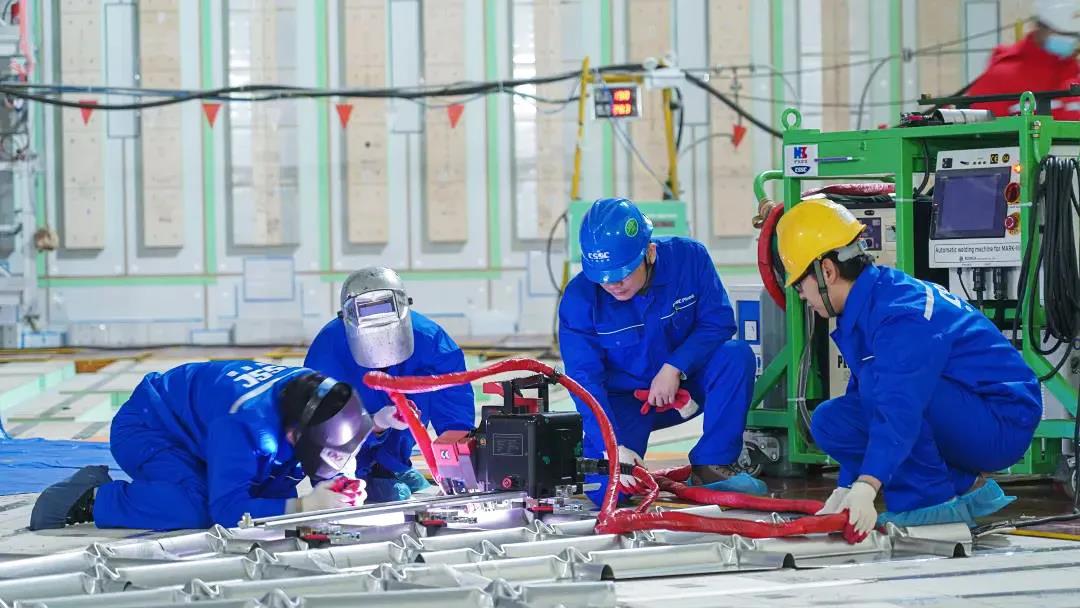 滬東中華是國(guó)際LNG儲(chǔ)運(yùn)裝備制造領(lǐng)先企業(yè),是唯一能夠同時(shí)建造No.96、MARK Ⅲ兩型LNG薄膜艙的船企。在中國(guó)船舶集團(tuán)高質(zhì)量發(fā)展戰(zhàn)略引領(lǐng)下,滬東中華不斷加強(qiáng)開拓LNG全產(chǎn)業(yè)鏈,其中也包括將Mark Ⅲ圍護(hù)系統(tǒng)技術(shù)由海向陸延伸。公司組織了最精干力量,應(yīng)用最先進(jìn)技術(shù)工藝,實(shí)施最嚴(yán)格工程管理,派出130多人的建造團(tuán)隊(duì),奮戰(zhàn)在項(xiàng)目現(xiàn)場(chǎng),執(zhí)行一流質(zhì)量標(biāo)準(zhǔn),與各方精誠(chéng)合作,通過(guò)該項(xiàng)目逐步帶動(dòng)大型LNG薄膜儲(chǔ)罐技術(shù)在中國(guó)推向深入。