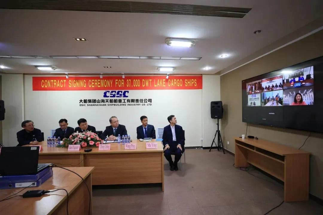 6艘16000TEU集裝箱船簽約現(xiàn)場(上圖),4艘37000噸大湖型散貨船簽約現(xiàn)場(下圖)。