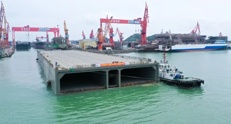 這是中國船舶集團(tuán)旗下廣船國際35天完成制造、今天交付出塢的深中通道海底隧道沉管E24管節(jié)鋼殼!