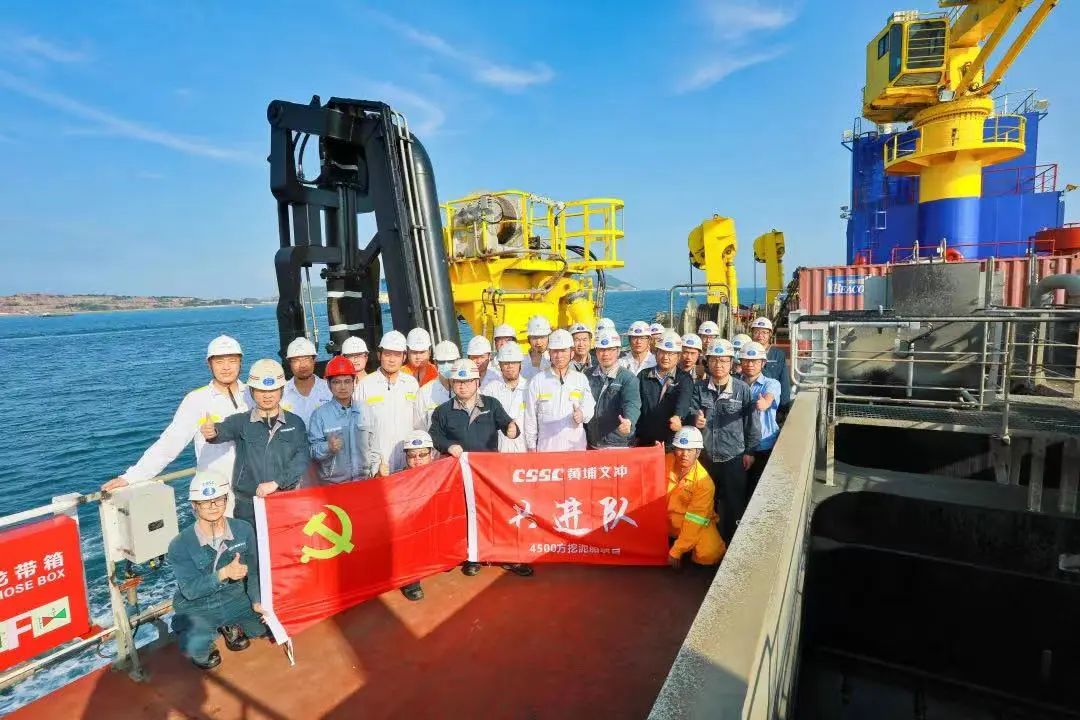 4500立方米智能耙吸挖泥船首制船自開工到完工四方確認(rèn),共歷時(shí)約16個(gè)月,可謂創(chuàng)下耙吸挖泥船建造周期最短紀(jì)錄。