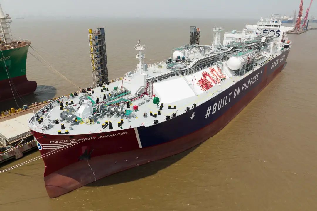 5月16日,中國(guó)船舶集團(tuán)旗下江南造船為浦銀租賃和山東海洋集團(tuán)下屬太平洋氣體船(香港)控股有限公司(PACIFIC GAS)建造的99000立方米B型艙超大型乙烷運(yùn)輸船(VLEC)“PACIFIC INEOS GRENADIER”號(hào)交付。