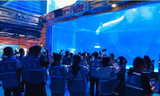 #8月2日下午,師生們前往昆明融創(chuàng)海世界游覽參觀。蔚藍(lán)的海洋館、童趣可愛的雨林劇場,仿佛經(jīng)歷了一次探索海洋奧秘、體驗(yàn)奇妙環(huán)海之旅,令師生們興奮不已,流連忘返?!帮w躍云南”讓師生們從另一個角度欣賞了洱海的大美、西雙版納的幽靜、普者黑的飄然出塵,更激發(fā)了師生們對家鄉(xiāng)對祖國的熱愛。
