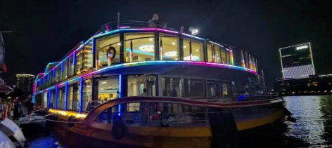 “廣游19”配置3015kWh純鋰電池驅(qū)動(dòng),Z形全回轉(zhuǎn)舵槳推進(jìn),經(jīng)濟(jì)航速下可滿足7小時(shí)續(xù)航要求。船體上建采用大面積玻璃幕墻,具有開(kāi)闊的觀光視野,可360度觀賞珠江日景夜景,可提供江景游覽、娛樂(lè)餐飲、會(huì)議招待、婚禮、音樂(lè)舞會(huì)、年會(huì)等綜合服務(wù)。