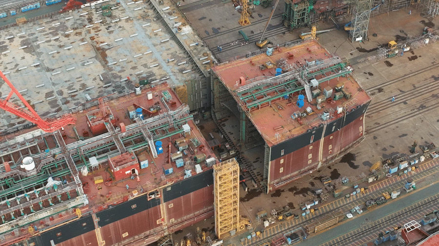 來(lái)欣賞“拼積木” ,這就叫環(huán)形總段總組工藝。