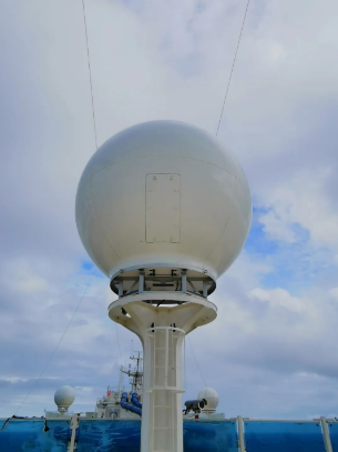 站在煙囪下面往船艏方向看,正對著1個大球,前前后后,愛達(dá)·魔都號的頂部共有5個同款大球,它們分別用于收發(fā)來自衛(wèi)星的電視和網(wǎng)絡(luò)信號,船上“5G+WIFI”網(wǎng)絡(luò)系統(tǒng)和艙室的IPTV就是在它們的加持下才得以實(shí)現(xiàn)。