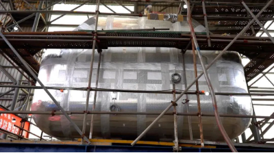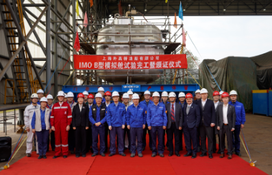 該B型模擬艙艙容為48立方米,艙室及氣室外形和節(jié)點型式皆與實船艙型保持一致,材質為9NI鋼。本次模擬艙建造完工,驗證了外高橋造船自主完成B型艙的設計、生產(chǎn)制造和質量控制等全流程的能力,為實船建造打下堅實基礎。