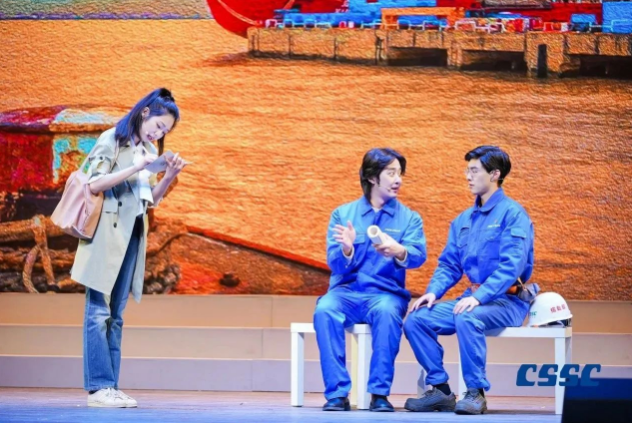 現(xiàn)場,來自中國船船集團江南造船(集團)有限責任公司、滬東中華造船(集團)有限公司、上海外高橋造船有限公司、中船動力(集團)有限公司和中國船舶集團公司第七〇二研究所的青年職工將真實工作案例與理論原文結合,將“發(fā)展新質生產(chǎn)力”作為工作方向與指引,將他們的造船故事親身演繹。故事從《船舶青年說》起航,共講述了五大篇章,分別為江南造船如何延續(xù)百年初心、滬東中華造船LNG船毫厘鑄匠心、七〇二所從“蛟龍”號到“奮斗者”號將深潛進行到底、外高橋造船“愛達?魔都號”大型郵輪“4個120天”的極限挑戰(zhàn)、江南造船“鋼鐵心臟”工程師攻克大型作戰(zhàn)艦建造的不凡創(chuàng)新路,臺詞鏗鏘有力、情感真摯流淌,繪就了一幅精彩的中國船舶夢畫卷。