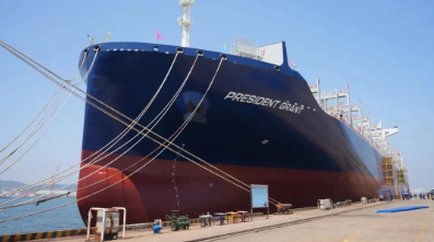 北海造船和中船貿(mào)易作為聯(lián)合賣方,為達(dá)飛海運(yùn)集團(tuán)建造的第2艘5500TEU集裝箱船命名。5500TEU集裝箱船項(xiàng)目為達(dá)飛公司與北海造船首次合作的新造船項(xiàng)目,該系列新造船包含10艘船舶,首制船“CMA CGM SAHARA”號(hào)已于今年2月1日交付,此次命名的“PRESIDENT GRANT”號(hào)為該系列船的第2艘船。