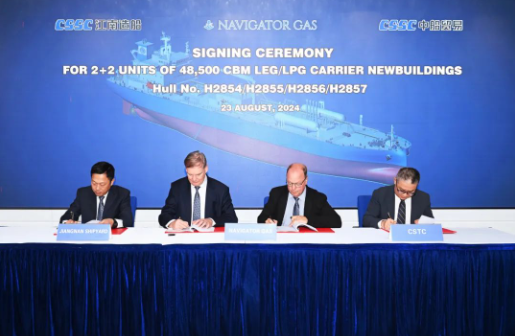 8月23日,江南造船與全球航運(yùn)巨頭Navigator公司正式簽訂了2+2艘中型液化乙烷運(yùn)輸船(MEC)的建造合同。
