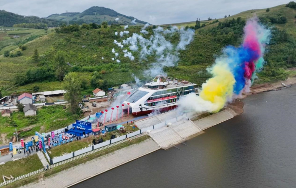 “天河一號(hào)”在東北地區(qū)內(nèi)河游覽船領(lǐng)域創(chuàng)下了多個(gè)“之最”:投資金額最大、噸位最大、載客人數(shù)最多、推進(jìn)功率最高、服務(wù)功能最齊全。作為吉林省首艘混合動(dòng)力綠色新能源船舶,同時(shí)也是首艘超過(guò)500客位的大型游覽船,“天河一號(hào)”的亮相為松花江增添了一道亮麗的風(fēng)景線(xiàn)。
