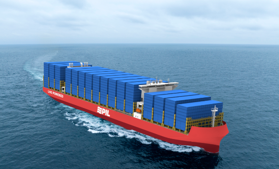 該型船是滬東中華自主研發(fā)設(shè)計(jì)、且針對太平船務(wù)運(yùn)營特點(diǎn)特別量身打造的一款綠色環(huán)保型集裝箱船,可裝載1308個(gè)冷藏集裝箱。搭載LNG雙燃料動(dòng)力推進(jìn)系統(tǒng),配備滬東中華自主研發(fā)的7600立方米B型LNG燃料艙,確保在燃?xì)饽J较?3000海里的續(xù)航能力。