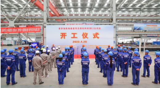 武昌造船承建的黃茅??绾Mǖ繥2合同段包括中引橋鋼箱梁、鋼護(hù)欄及附屬構(gòu)件,東、西引橋節(jié)段梁鋼護(hù)欄,工程量約4.33萬(wàn)噸。