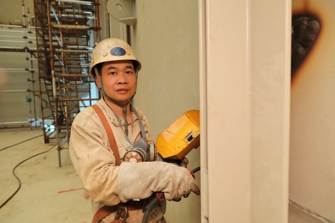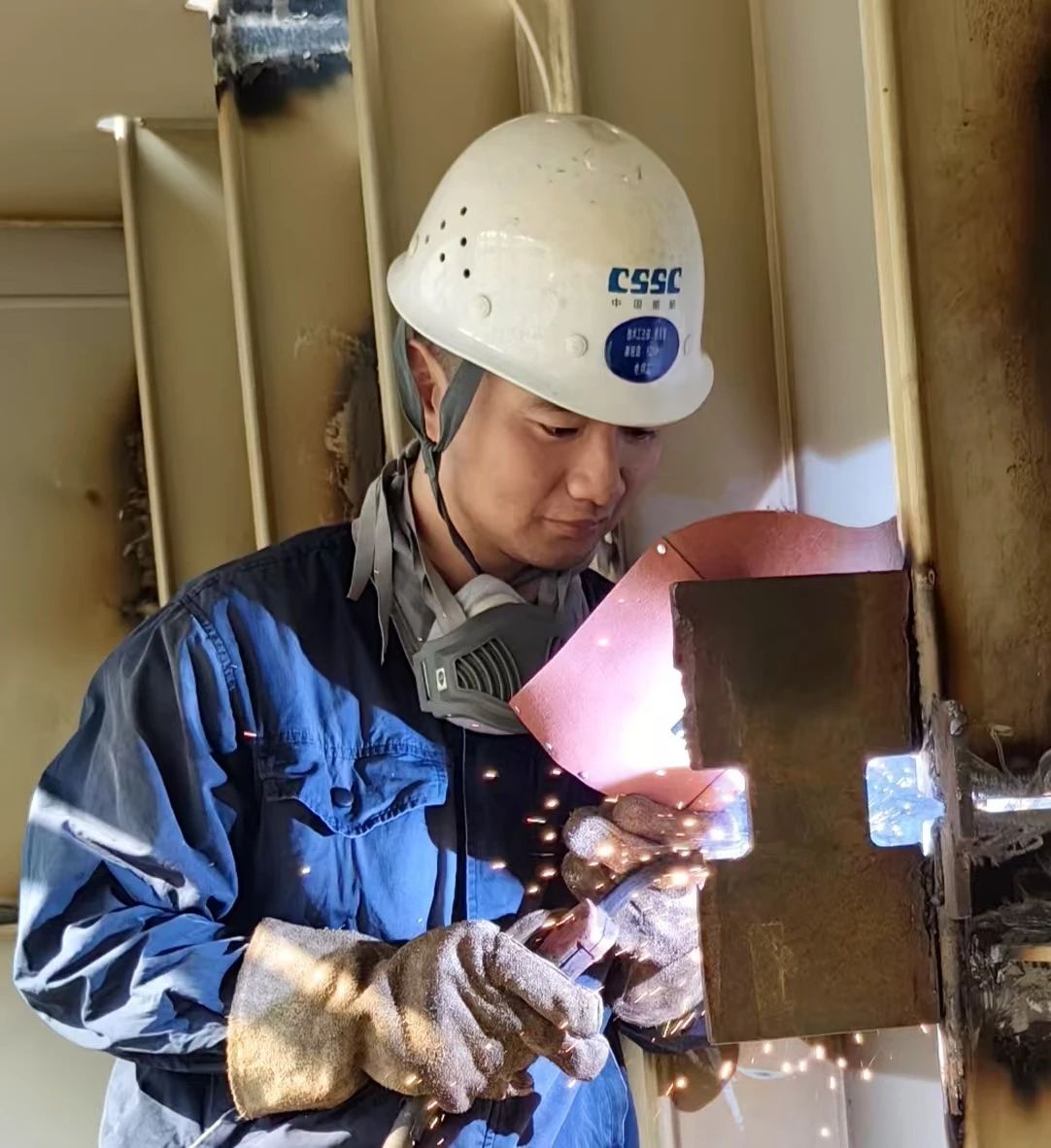 為了更好地掌握超厚板的焊接,搭載一部支持大合攏一班的梁金華和同事們一起進(jìn)行了專門(mén)的焊接培訓(xùn)。有趣的是,老師謝祖靠、學(xué)生梁金華,都是來(lái)自該所技校的畢業(yè)生。既是師兄弟、又是師徒,這在黃埔文沖的工人隊(duì)伍當(dāng)中并不少見(jiàn)。