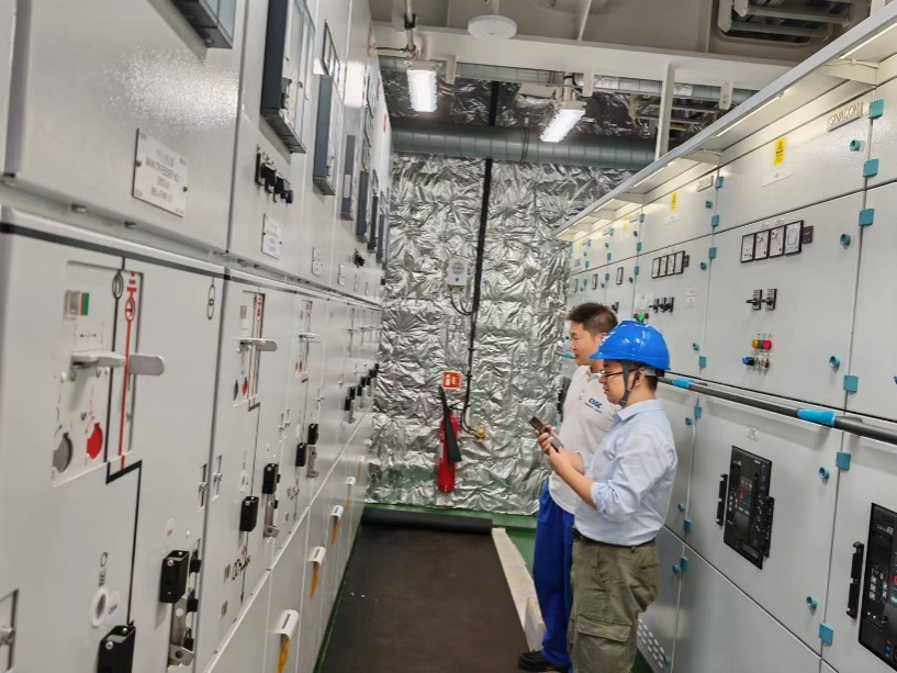 在研發(fā)設(shè)計之初,電力系統(tǒng)項目組面臨技術(shù)難度大、可供借鑒的過往案例少等困難,為了給我國自主設(shè)計建造的首艘大洋鉆探船“夢想”號提供一套能在深海復(fù)雜環(huán)境下穩(wěn)定運行的閉環(huán)電力系統(tǒng),項目組當(dāng)機立斷,與船東船廠、設(shè)計院、船級社共同商討技術(shù)方案,開展技術(shù)協(xié)調(diào)會20余次、完成認(rèn)可圖確認(rèn)意見300余項、解決系統(tǒng)相關(guān)問題80余項,為后續(xù)的針對性設(shè)計工作打下良好基礎(chǔ)。